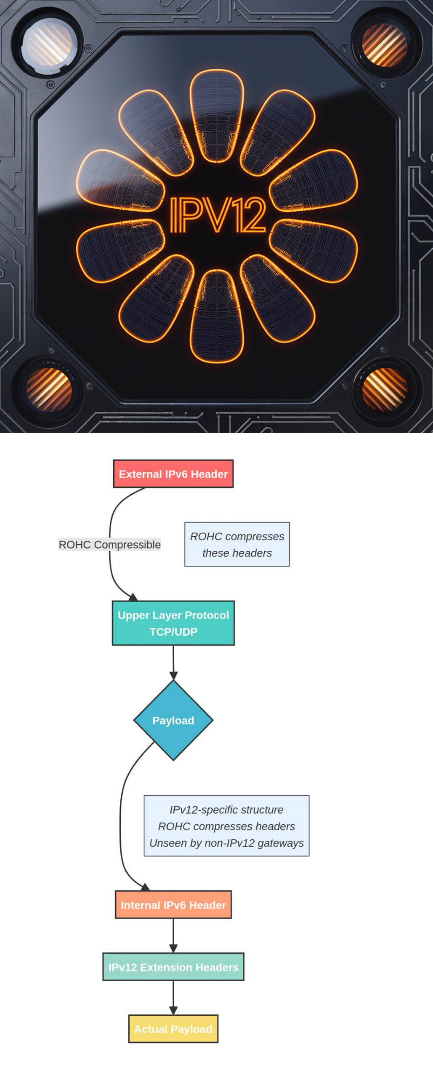 Being a payload-based extension of IPv6, IPv12 requires only